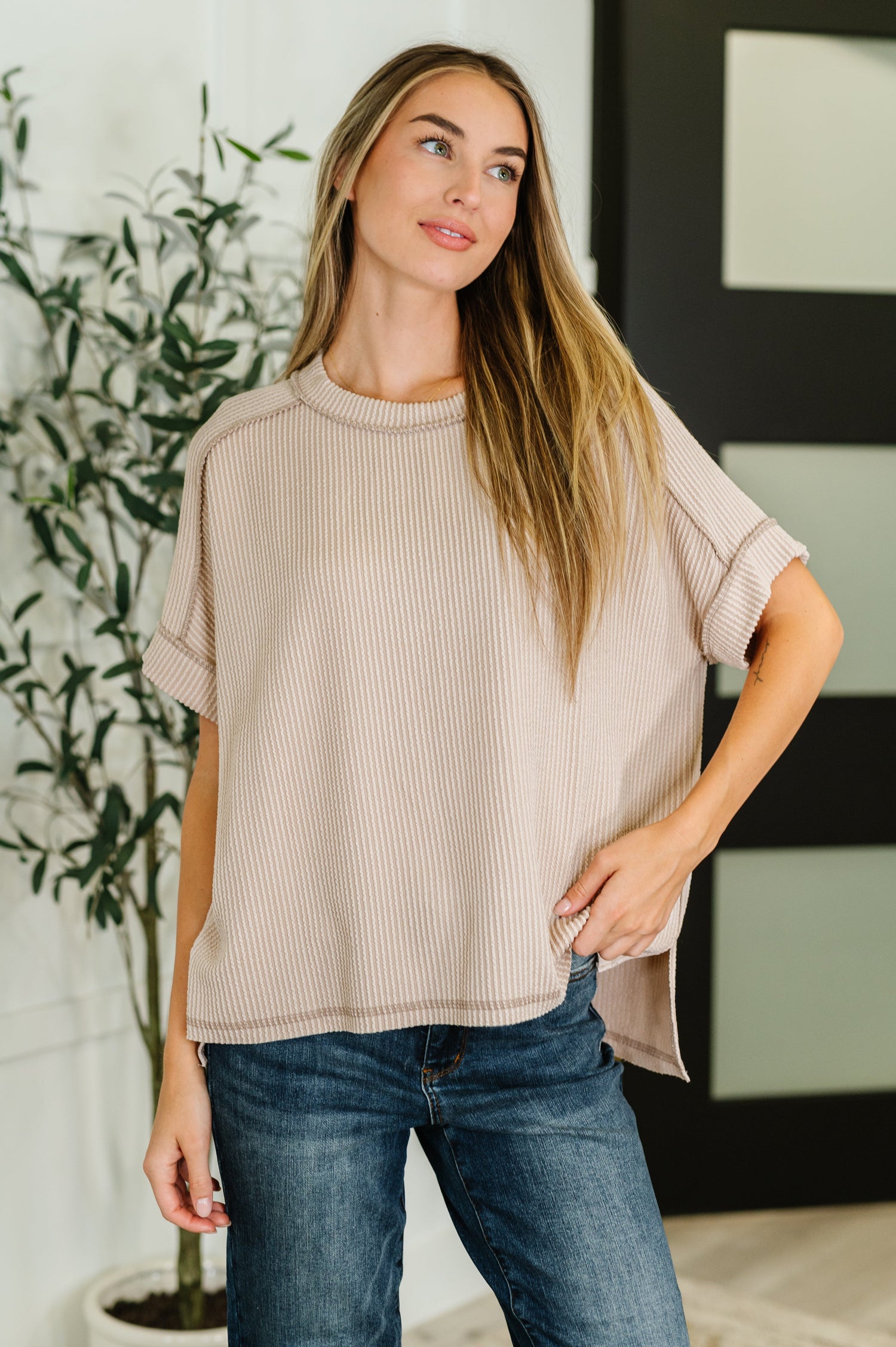 Catch Me Loungin’ Cable Ribbed Knit Top in Ash Mocha