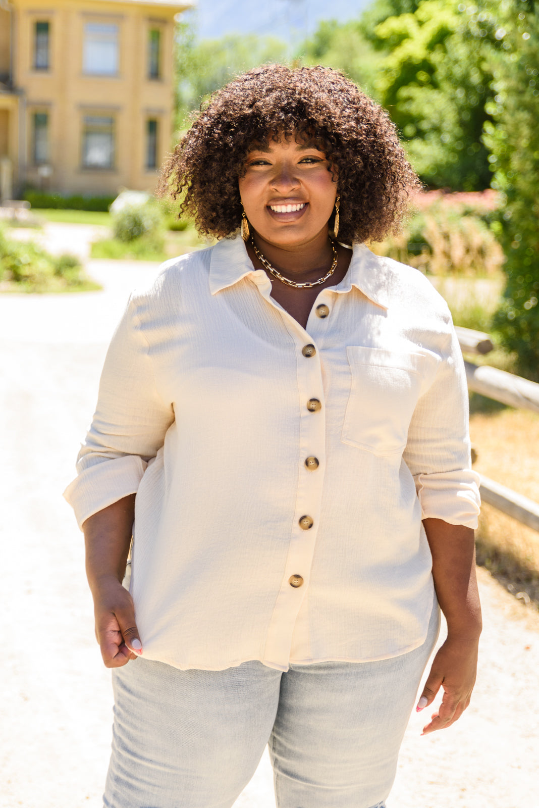 Show everyone how stylish you are in the Want The Best Button Up Top! This gauzy lightweight staple is both versatile and functional with a button front and cuffs, collared neckline, rounded hemline, and front patch pocket! This dreamy button up will quickly become a year round fav!